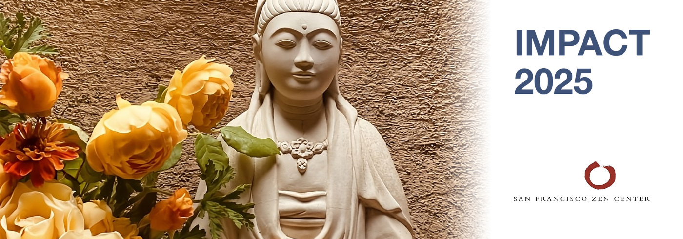 At San Francisco Zen Center, we remain deeply committed to honoring the legacy of our founder, Shunryu Suzuki Roshi, while extending the reach of our offerings to meet the needs of today’s world. For more than six decades, our temples and teachings have offered refuge, inspiration, and a path of awakening to thousands of people. Thanks to your generosity, the past year has been a time of both renewal and expansion. Together, we have strengthened our temples and offerings, broadened access to practice for communities near and far, and continued to envision new possibilities for the future. None of this would be possible without your partnership. With deep gratitude, we invite you to view our 2025 Impact Report to learn how your support is shaping the present—and laying the foundation for the next 100 years of Zen practice.